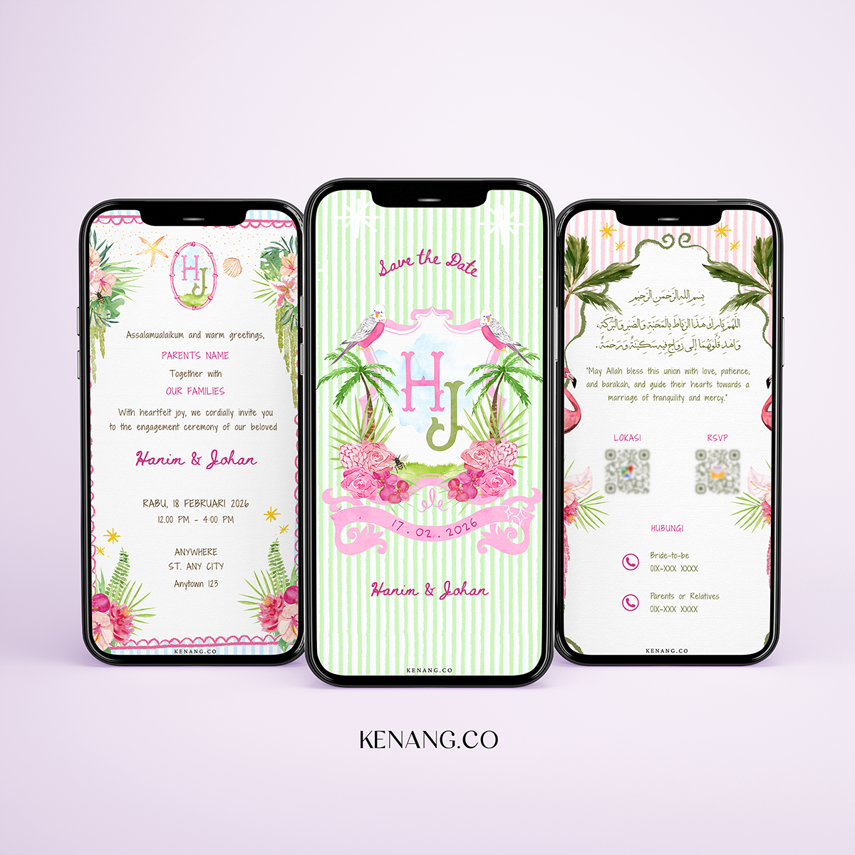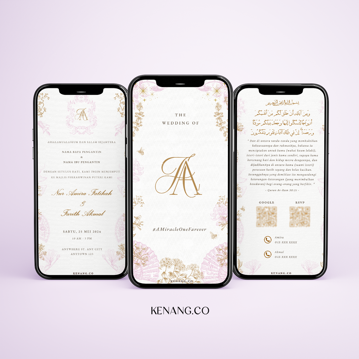 KENANG.CO creates stunning personalized wedding invitations with a variety of designs, multiple variations, and page options to celebrate your special moments. Our professionally crafted invitations offer an effortless way to add an elegant touch to your celebrations, brought to life with your unique details.
